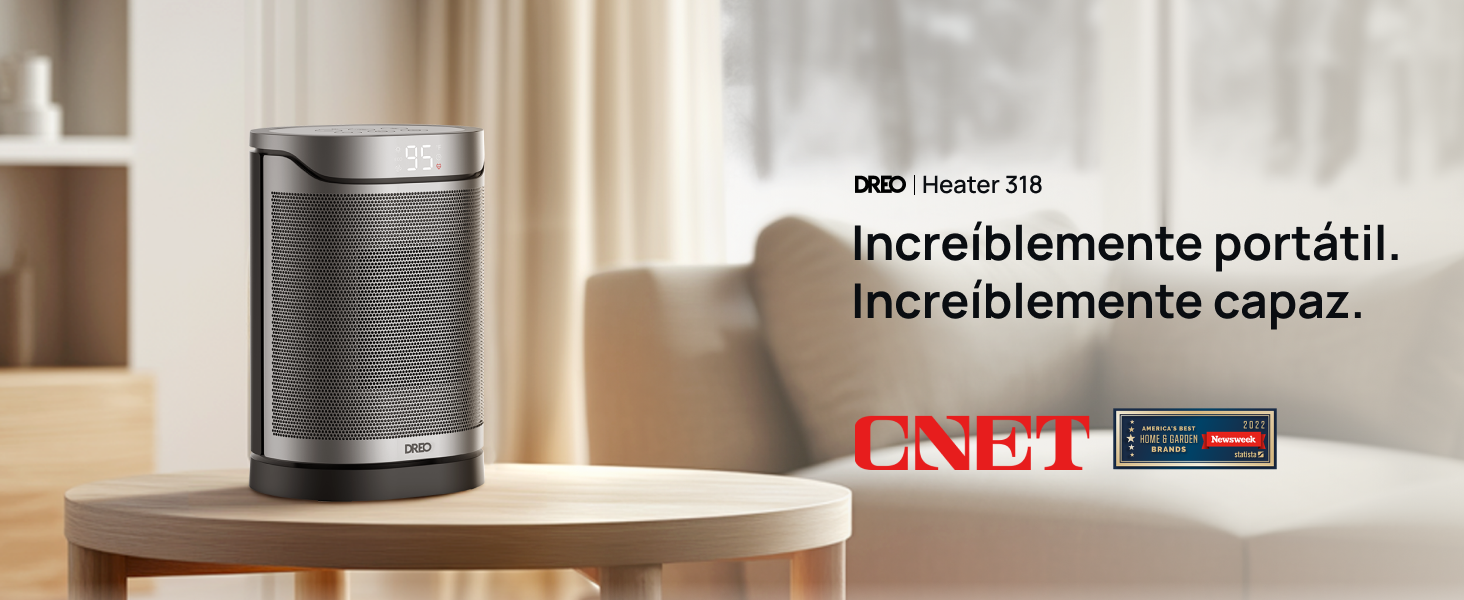 El calefactor portátil con termostato de Dreo es la mejor opción para calentar tu casa de forma rápida con el calor que se envuelve en todas direcciones gracias a la tecnologia Hyperamic.