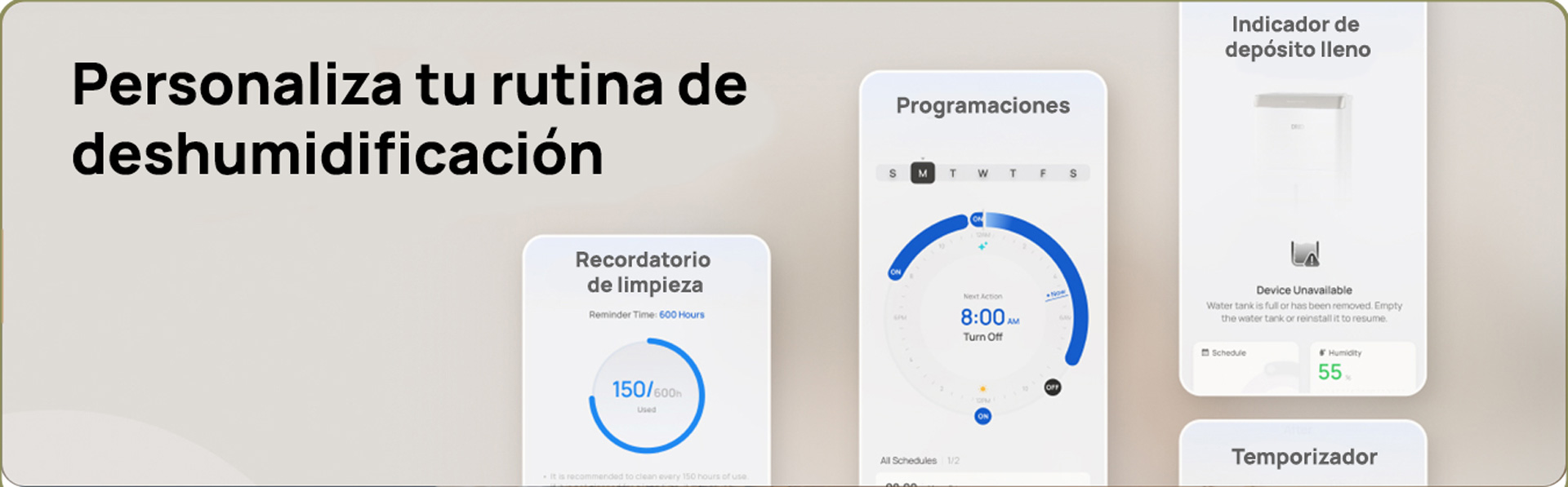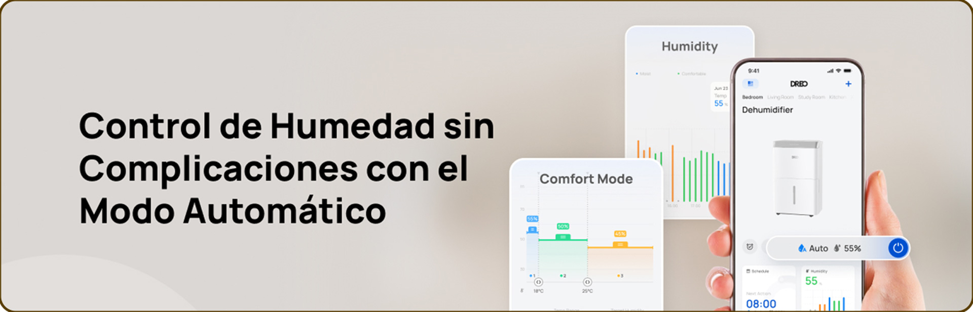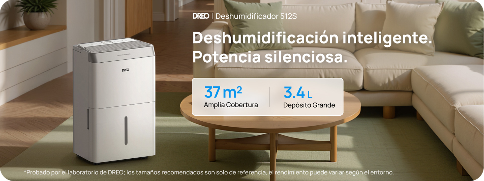 *Probado internamente por el laboratorio de DREO en una habitación de 3,8 × 3,8 m, con la humedad reduciéndose del 90 % al 54 % en una hora.