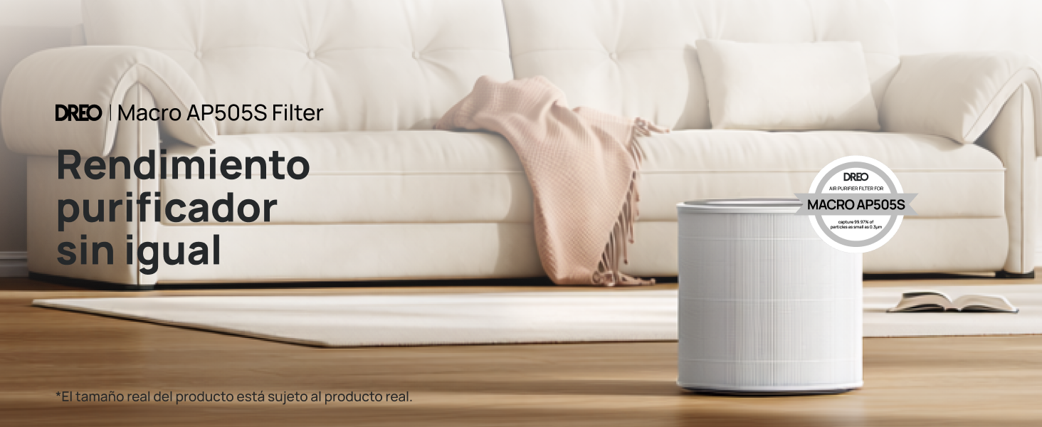 - Silencioso: El purificador con este filtro puede funcionar a solo 22 dB en modo sueño, ideal para dormitorios o espacios de trabajo silenciosos.