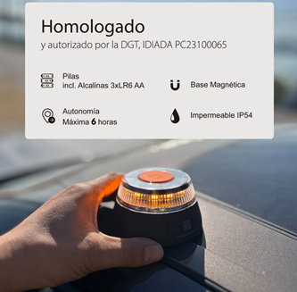 La luz de emergencia V16 de MEGALED está homologada por la DGT y lista para el cambio obligatorio en 2026. Cuenta con geolocalización conectada a través de Telefónica Tech, sin cuotas hasta 2038. Visible a más de 1 km, con base magnética para instalar sin salir del coche. Funciona con pilas incluidas. Compacta, resistente y válida para coches y motos, garantiza seguridad inmediata en cualquier situación vial.