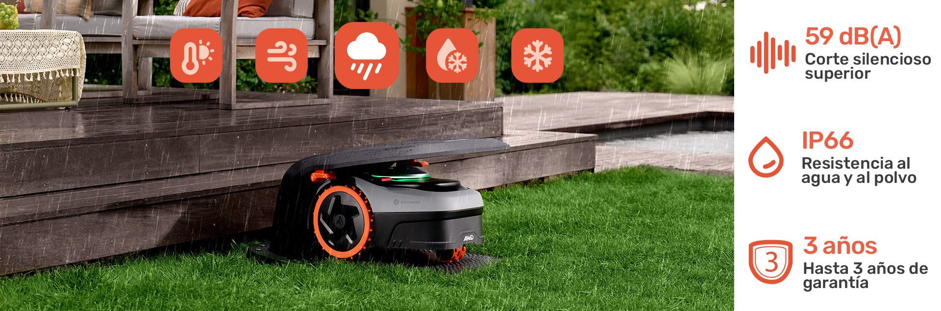 Capaz de identificar cinco condiciones meteorológicas extremas: viento, heladas, lluvia, nieve y altas temperaturas, ajusta automáticamente el corte para evitar operar en condiciones meteorológicas adversas, protegiendo tanto el césped como el dispositivo.