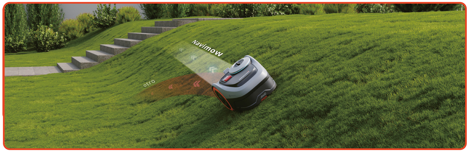 A diferencia de otros productos de dos ruedas, este cortacésped ajusta dinámicamente su trayectoria en pendiente para desplazarse de manera recta y estable en cualquier dirección, ofreciendo un corte consistente y uniforme en pendiente.